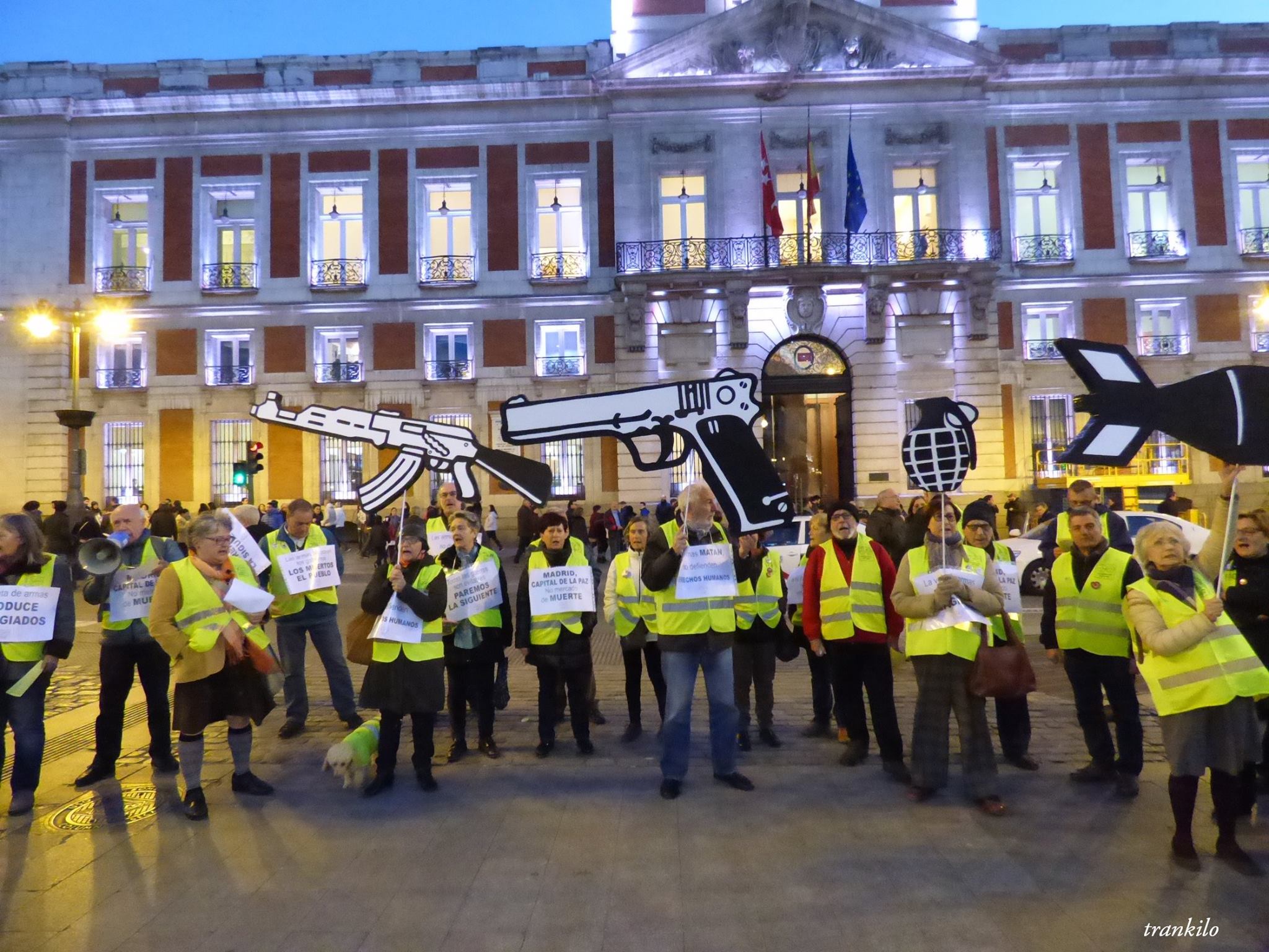 Nos negamos a normalizar el ambiente belicista y militarista que nos están inculcando. Nos negamos a justificar la preparación de la guerra como algo inevitable. Nos negamos a que los recursos limitados de nuestros impuestos se dediquen al rearme, a la preparación de la guerra y a la organización de una nueva carnicería belicista en nombre de nuestra seguridad. Porque los recursos que nos roban los señores de la guerra son recursos que necesitamos para cuidar de la vida de las personas y la salud del planeta. Nos oponemos al gasto militar porque afecta directamente al eje de nuestras luchas: la defensa de los servicios públicos, los derechos humanos y las libertades, los cuidados del planeta, las luchas feministas y, en definitiva, el futuro de nuestras hijas e hijos, de nuestras nietas y nietos. Reclamamos más seguridad humana mientras denunciamos el timo de la pretendida seguridad militar.